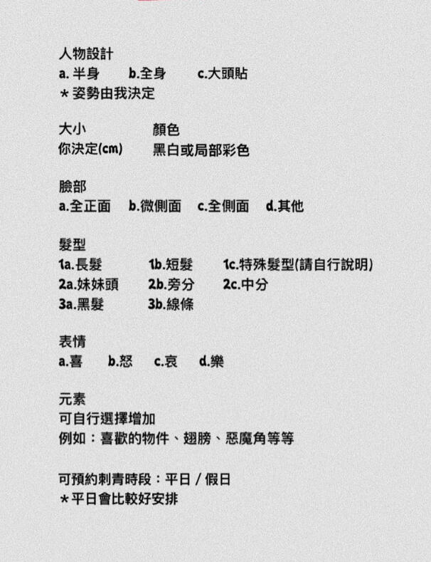 3. 約時間刺青文字小物流程1. 私訊告知確切大小及內容
